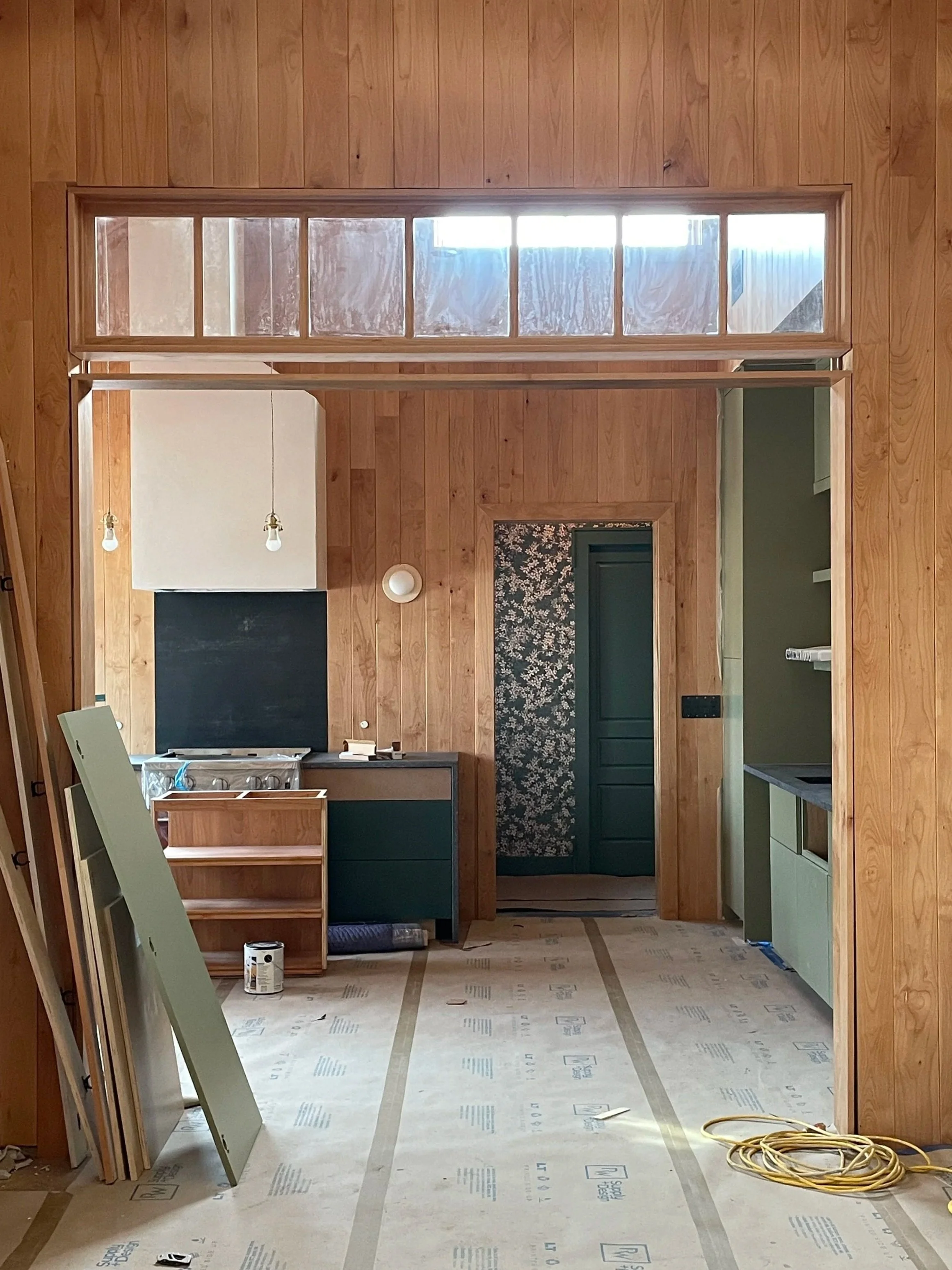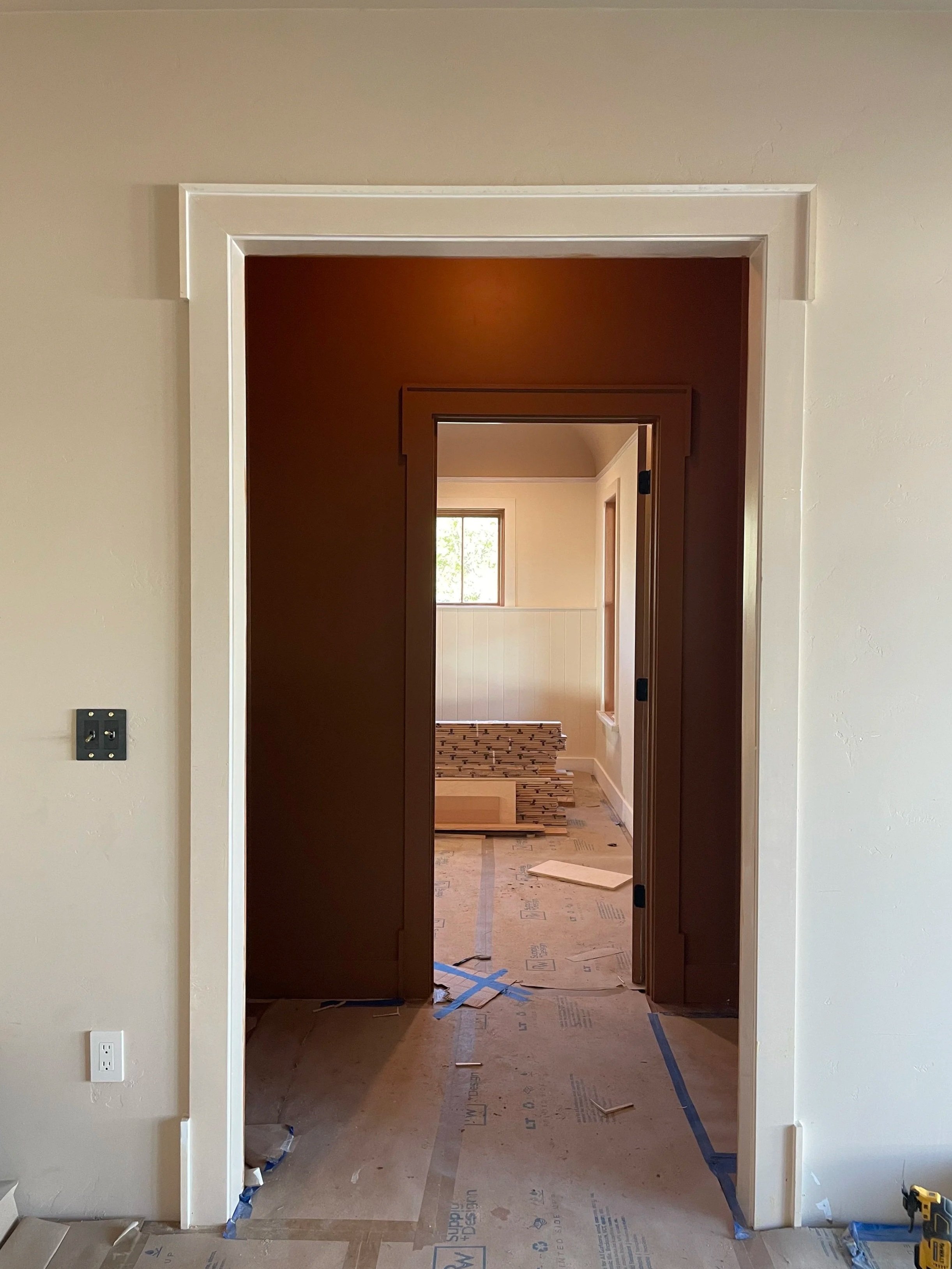 One of the most exciting points in our building process was watching these sight lines slowly reveal themselves. A memorable moment was when the wallpaper was installed in the south vestibule that leads to the outdoor grill and courtyard. On the north side of the home the view from the living room into the main bedroom is comprised of four different paint colors that complement the layers of decorative paneling, millwork and trim.