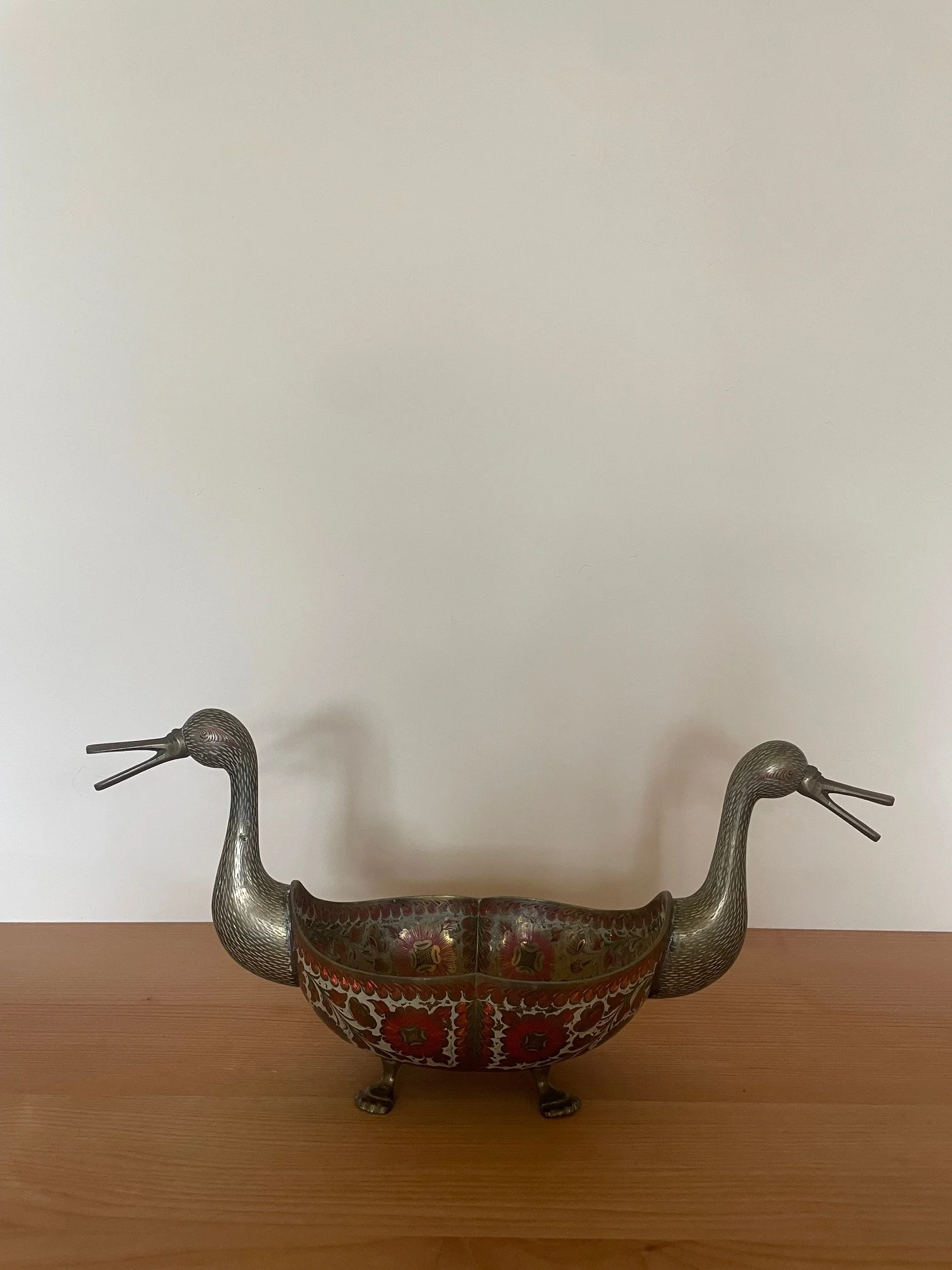 Vintage enamel artwork with custom steel base. Excellent condition.