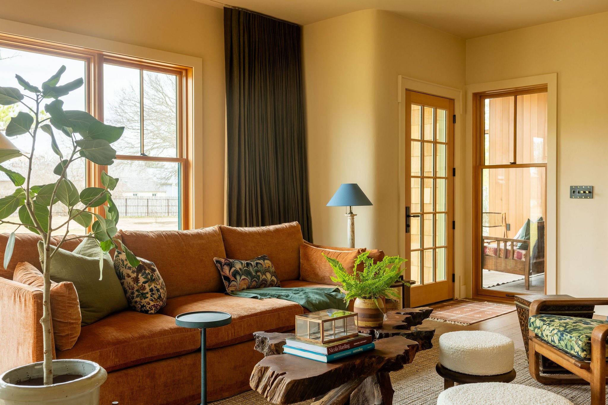 99” Wide. 41” Deep. Caitlin slipcovered sofa in Performance Vintage Auburn Velvet.