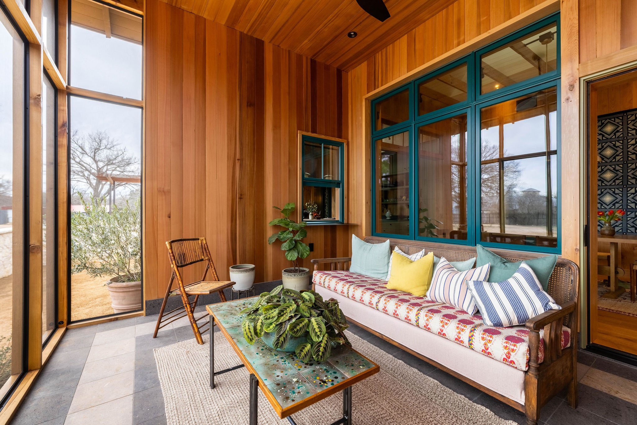 Excellent refurbished condition. Restored and reupholstered in performance outdoor fabric. Pillows sold separately.